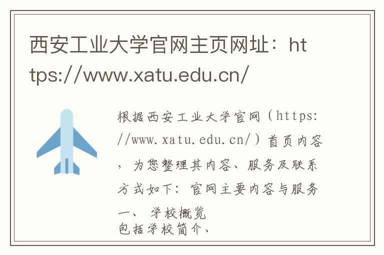 根据西安工业大学官网(https://www.xatu.edu.cn/)首页内容,为您整理其内容、服务及联系方式如下: