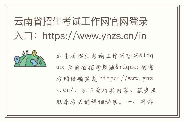 云南省招生考试工作网官网“云南省招考频道”的官方网址确实是 https://www.ynzs.cn/,以下是对其内容、服务及联系方式的详细说明。