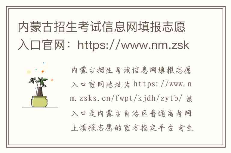 内蒙古招生考试信息网填报志愿入口官网地址为 https://www.nm.zsks.cn/fwpt/kjdh/zytb/ 该入口是内蒙古自治区普通高考网上填报志愿的官方指定平台 考生通过此链接可进入高考志愿填报系统 完成各批次的志愿填报与修改工作
