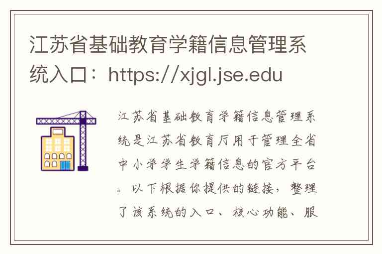 江苏省基础教育学籍信息管理系统是江苏省教育厅用于管理全省中小学学生学籍信息的官方平台。以下根据你提供的链接,整理了该系统的入口、核心功能、服务对象及官方联系方式等信息。