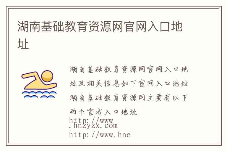 湖南基础教育资源网官网入口地址及相关信息如下