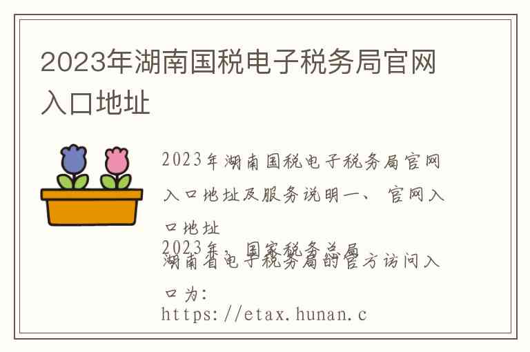 2023年,国家税务总局湖南省电子税务局的官方访问入口为: