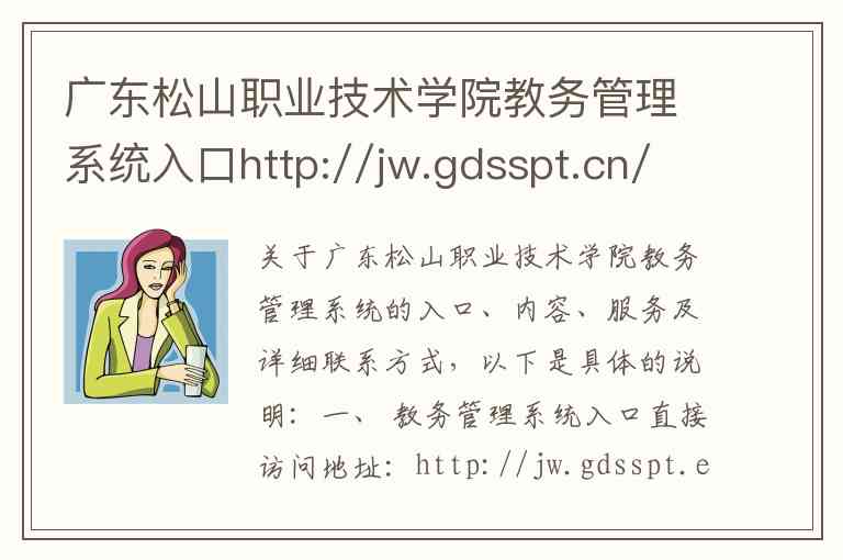 关于广东松山职业技术学院教务管理系统的入口、内容、服务及详细联系方式,以下是具体的说明: