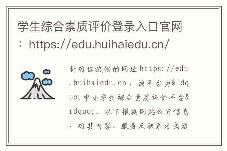 针对你提供的网址 https://edu.huihaiedu.cn ,该平台为“中小学生综合素质评价平台”。以下根据网站公开信息,对其内容、服务及联系方式进行具体说明: