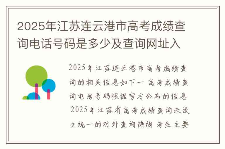 2025年江苏连云港市高考成绩查询的相关信息如下