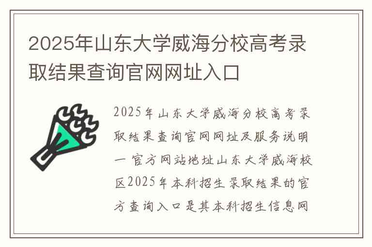 2025年山东大学威海分校高考录取结果查询官网网址及服务说明