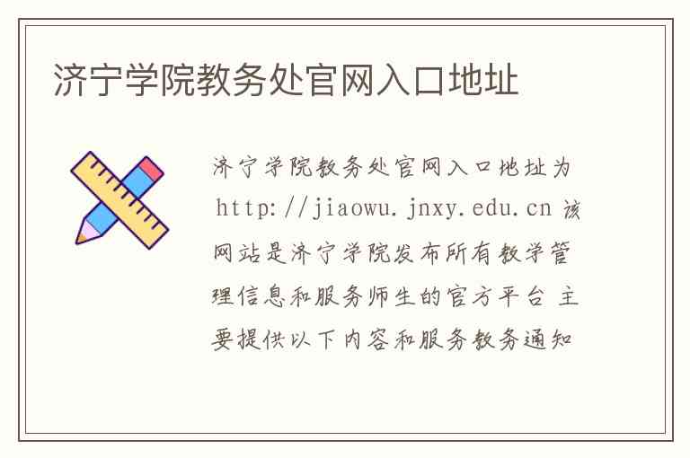 济宁学院教务处官网入口地址为 http://jiaowu.jnxy.edu.cn