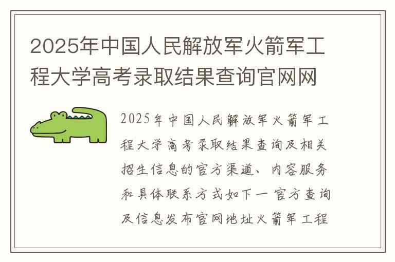 2025年中国人民解放军火箭军工程大学高考录取结果查询及相关招生信息的官方渠道、内容服务和具体联系方式如下