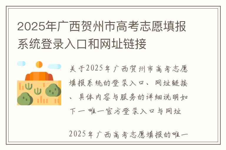 关于2025年广西贺州市高考志愿填报系统的登录入口、网址链接、具体内容与服务的详细说明如下