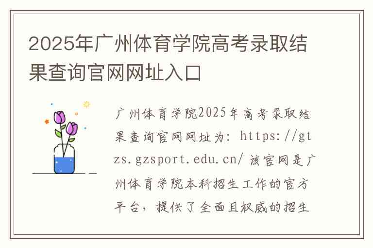 广州体育学院2025年高考录取结果查询官网网址为:https://gtzs.gzsport.edu.cn/