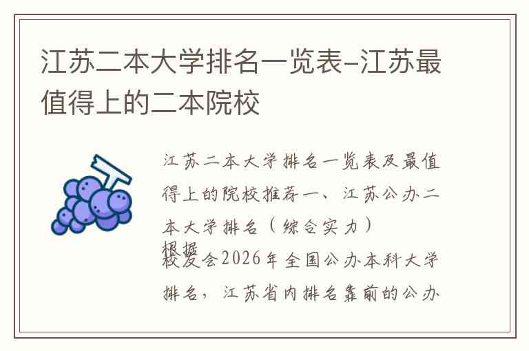 根据校友会2026年全国公办本科大学排名,江苏省内排名靠前的公办二本大学如下: