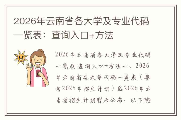 2026年云南省各大学及专业代码一览表 查询入口+方法