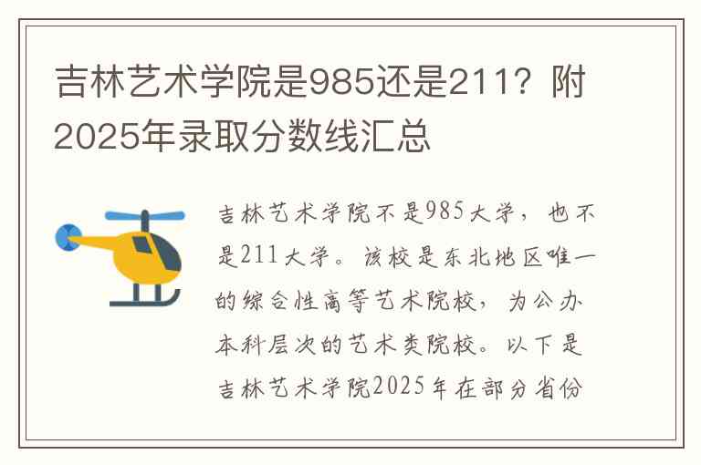 以下是吉林艺术学院2025年在部分省份的录取分数线汇总: