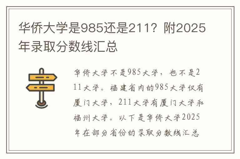 华侨大学不是985大学,也不是211大学。福建省内的985大学仅有厦门大学,211大学有厦门大学和福州大学。