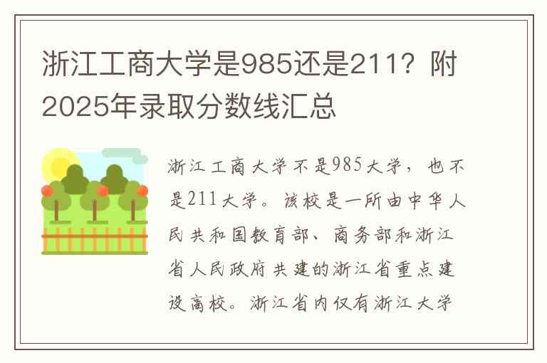 浙江工商大学不是985大学,也不是211大学。