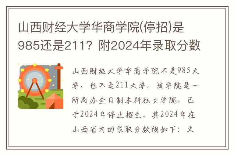 山西财经大学华商学院(停招)是985还是211?附2024年录取分数线汇总