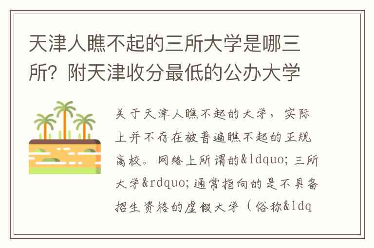 关于天津人瞧不起的大学,实际上并不存在被普遍瞧不起的正规高校。网络上所谓的“三所大学”通常指向的是不具备招生资格的虚假大学(俗称“野鸡大学”)。根据人民日报公布的名单及媒体的曝光,天津市民及考生最需警惕的典型虚假大学包括以下三所: