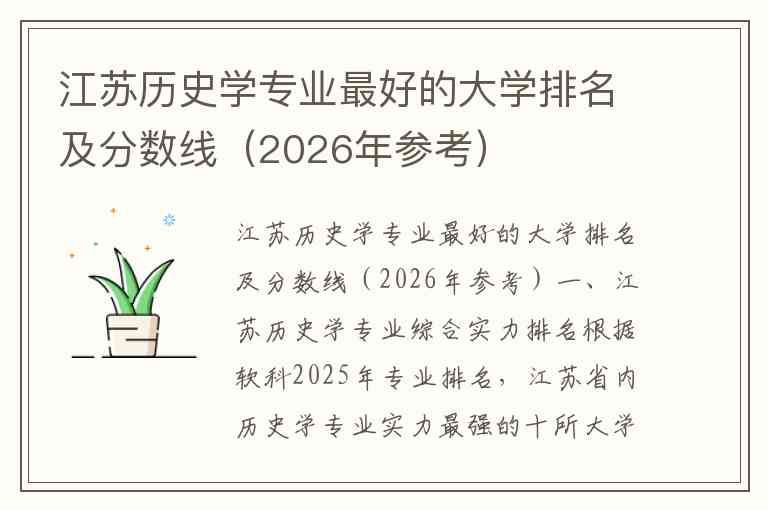江苏历史学专业最好的大学排名及分数线(2026年参考)