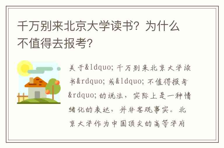 关于“千万别来北京大学读书”或“不值得报考”的说法,实际上是一种情绪化的表达,并非客观事实。北京大学作为中国顶尖的高等学府,依然拥有着其他学校难以比拟的优势,但也面临着一些现实挑战和社会评价的变化。我们可以从以下几个角度来看待这个问题:
