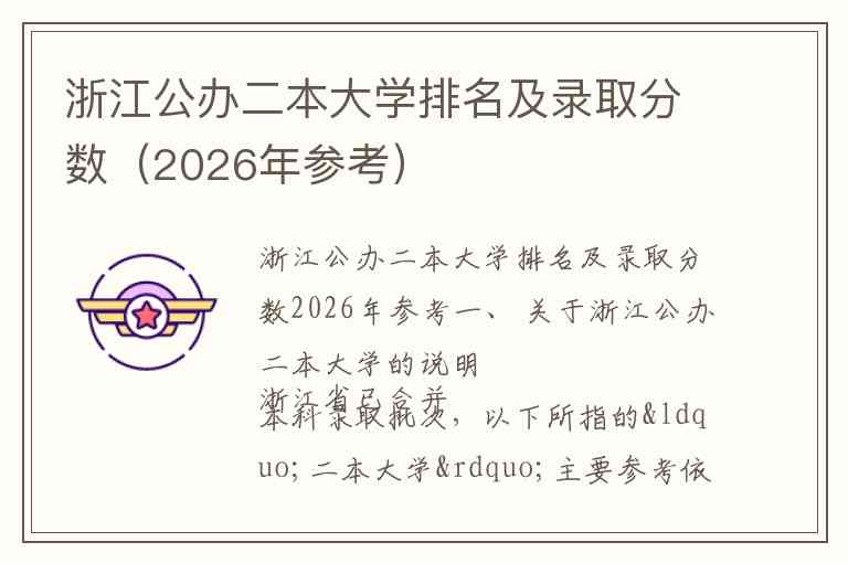 浙江公办二本大学排名及录取分数2026年参考