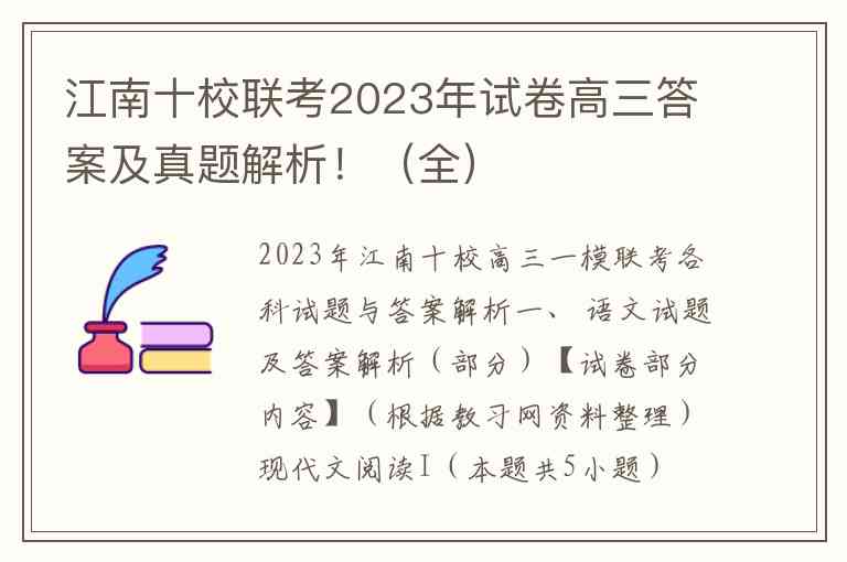 2023年江南十校高三一模联考各科试题与答案解析