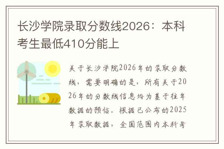 关于长沙学院2026年的录取分数线,需要明确的是,所有关于2026年的分数线信息均为基于往年数据的预估。根据已公布的2025年录取数据,全国范围内本科考生的最低录取分数确实为410分,该分数来自甘肃省的物理类招生。