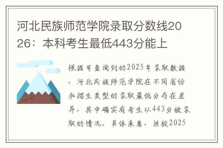 根据可查询到的2025年录取数据,河北民族师范学院在不同省份和招生类型的录取最低分存在差异,其中确实有考生以443分被录取的情况。