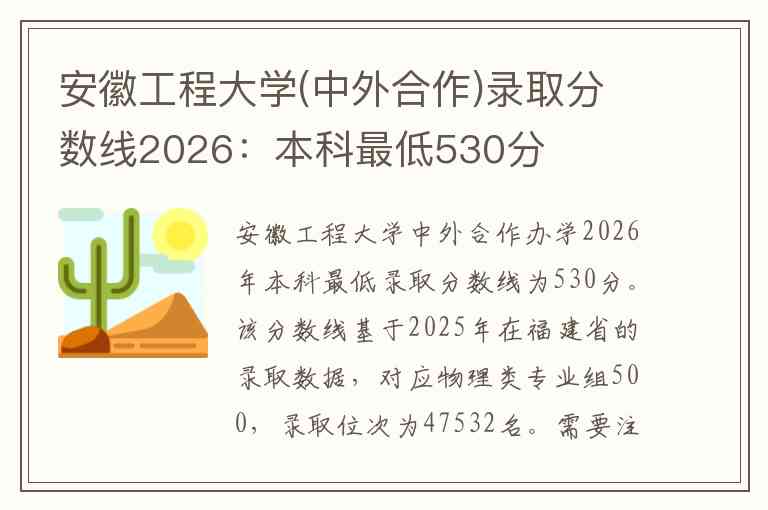安徽工程大学中外合作办学2026年本科最低录取分数线为530分。
