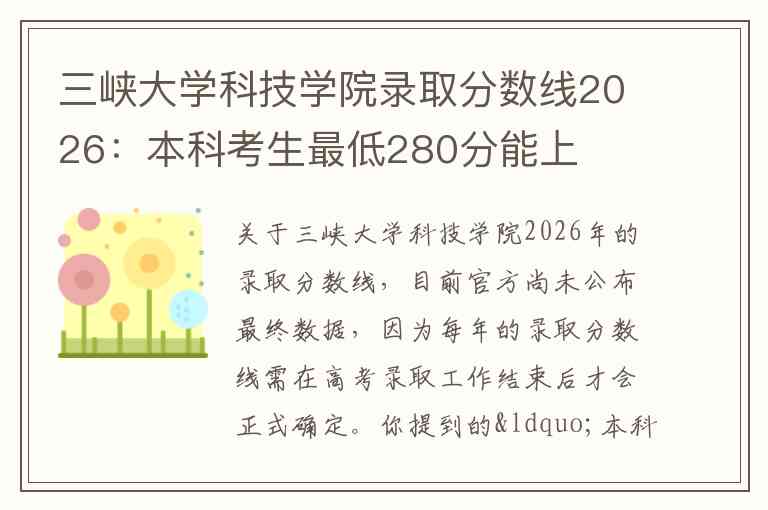 关于三峡大学科技学院2026年的录取分数线,目前官方尚未公布最终数据,因为每年的录取分数线需在高考录取工作结束后才会正式确定。