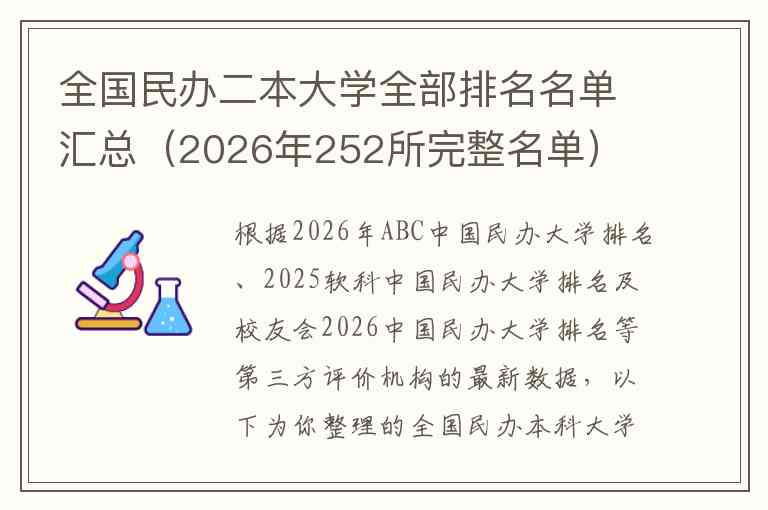 根据2026年ABC中国民办大学排名、2025软科中国民办大学排名及校友会2026中国民办大学排名等第三方评价机构的最新数据,以下为你整理的全国民办本科大学名单及相关排名信息。