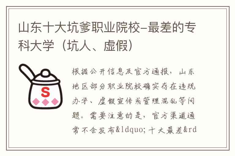 根据公开信息及官方通报,山东地区部分职业院校确实存在违规办学、虚假宣传或管理混乱等问题。需要注意的是,官方渠道通常不会发布“十大最差”这类主观排名,以下列出的院校及问题均基于近期发生的具体事件或官方通报,旨在揭示风险,而非全盘否定学校的整体教育质量。