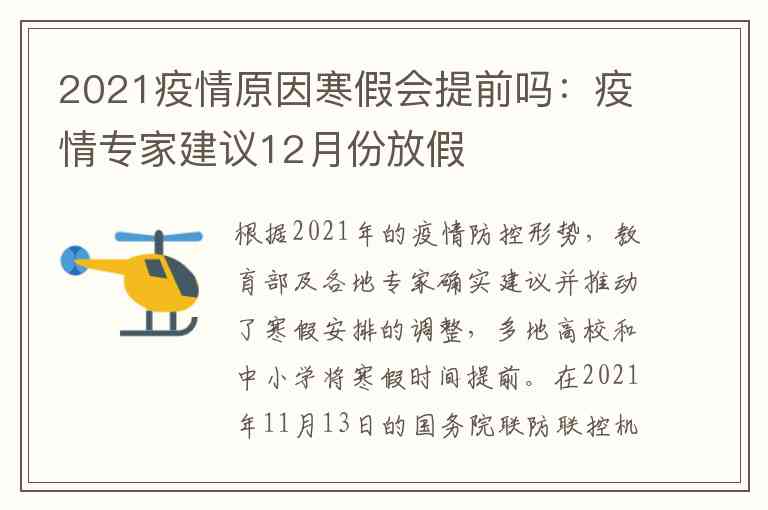因此,在2021年,受疫情形势和专家建议的影响,提前放寒假是各地学校普遍采取的措施。
