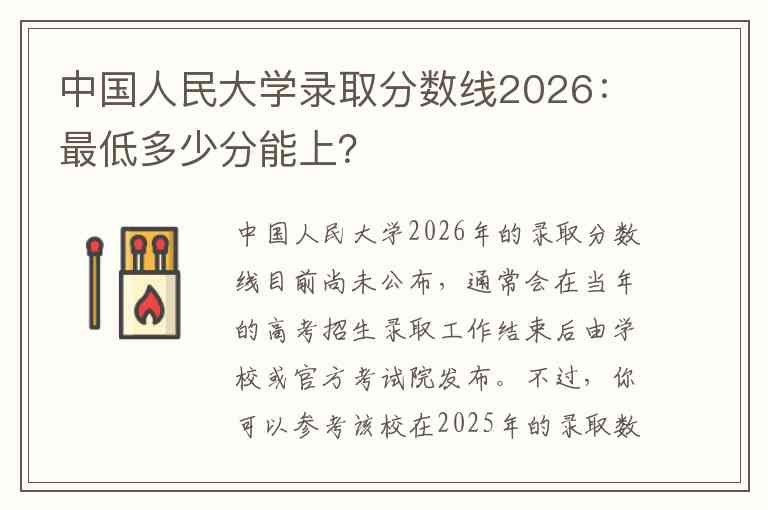 中国人民大学2026年的录取分数线目前尚未公布,通常会在当年的高考招生录取工作结束后由学校或官方考试院发布。