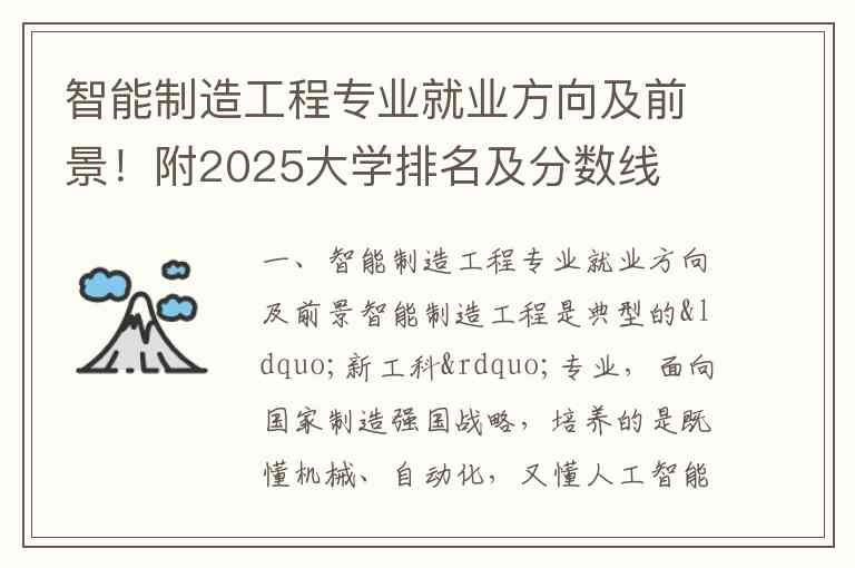 二、2025-2026年智能制造工程专业大学排名