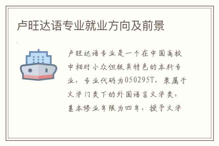 卢旺达语专业毕业生的职业发展路径清晰,主要服务于国家战略需求和国际市场,具体方向如下: