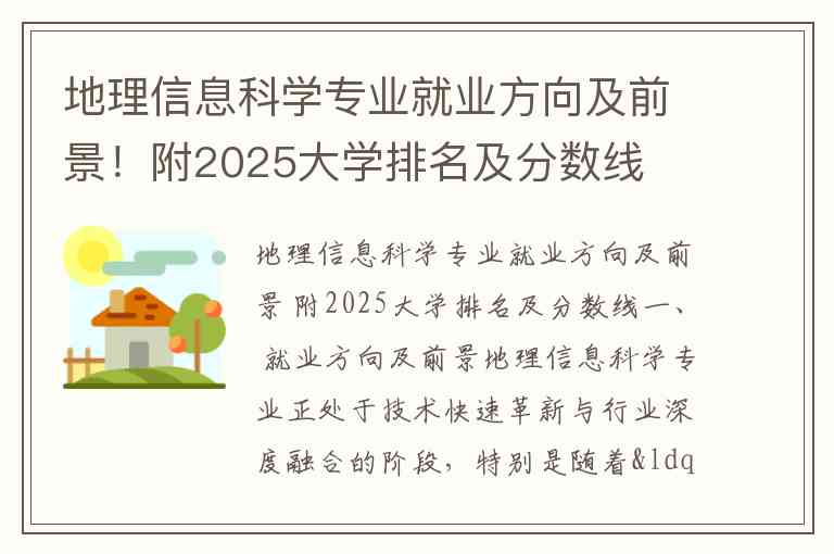 地理信息科学专业就业方向及前景 附2025大学排名及分数线