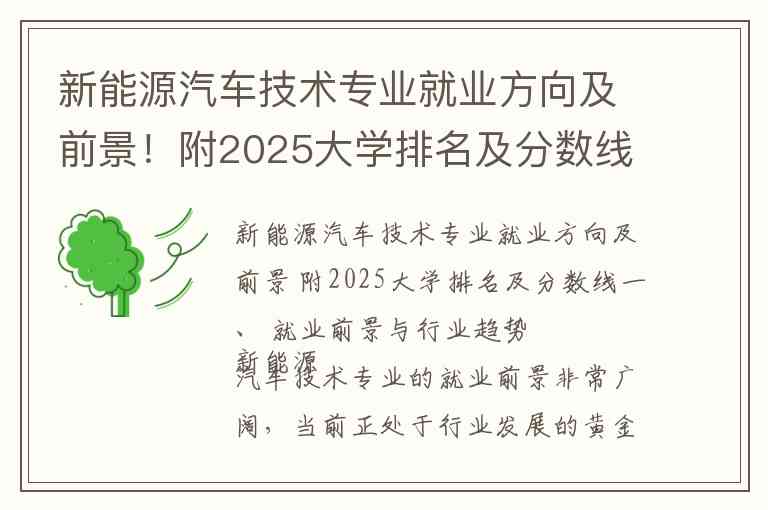 新能源汽车技术专业就业方向及前景 附2025大学排名及分数线