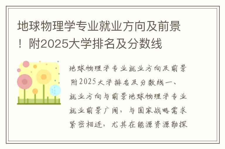 地球物理学专业就业方向及前景 附2025大学排名及分数线