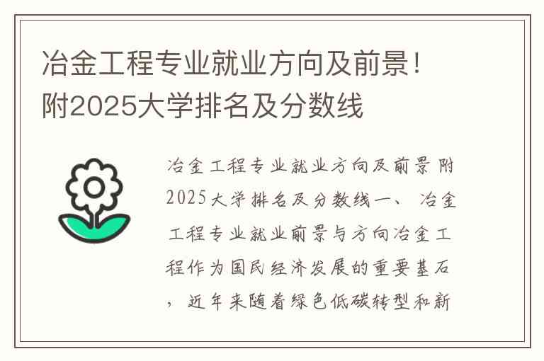 冶金工程专业就业方向及前景 附2025大学排名及分数线