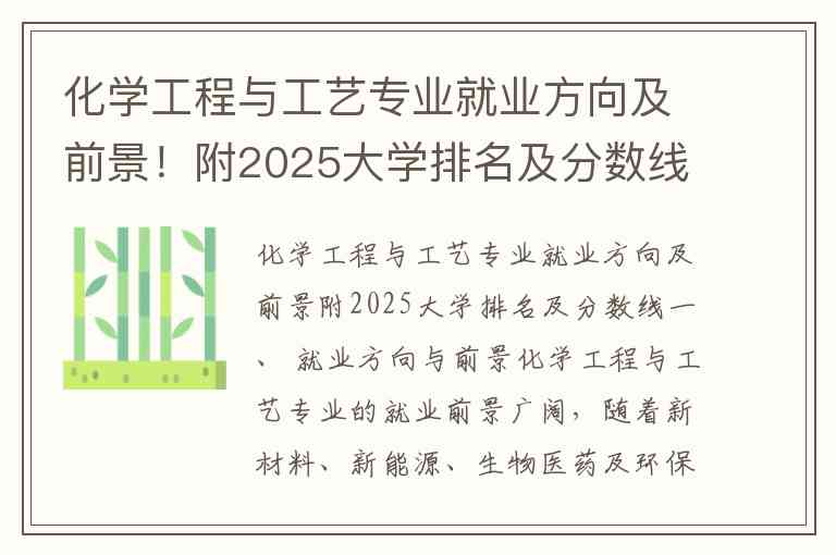 化学工程与工艺专业就业方向及前景附2025大学排名及分数线