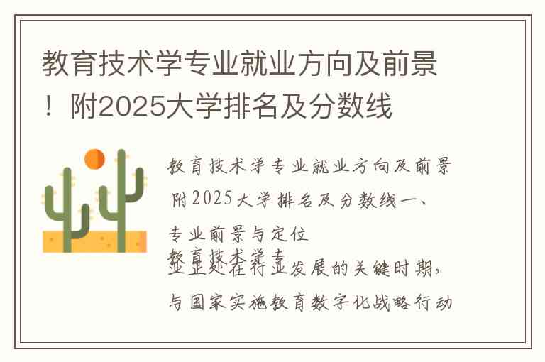 教育技术学专业就业方向及前景 附2025大学排名及分数线