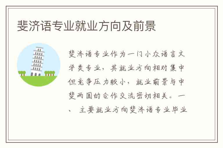 斐济语专业作为一门小众语言文学类专业,其就业方向相对集中但竞争压力较小,就业前景与中斐两国的合作交流密切相关。