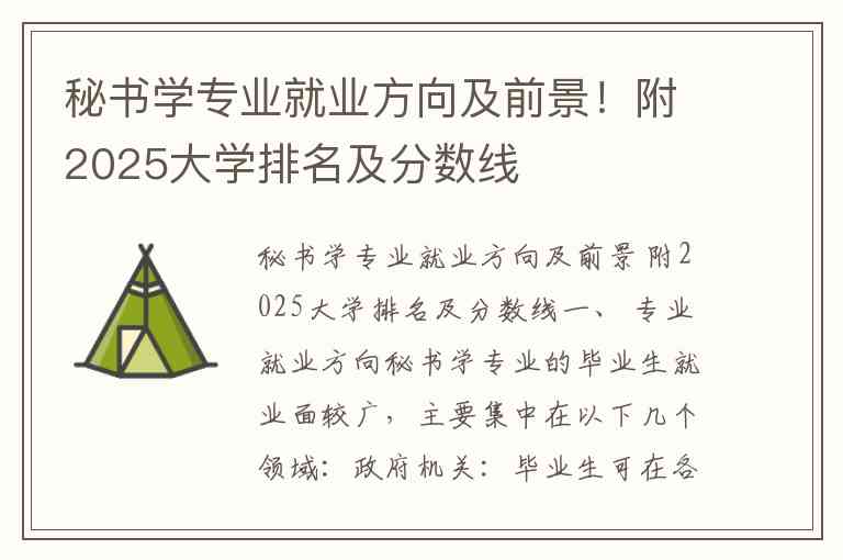 秘书学专业就业方向及前景 附2025大学排名及分数线