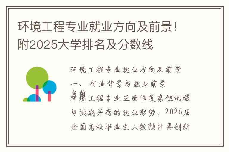 2025年环境科学与工程专业大学排名及分数线