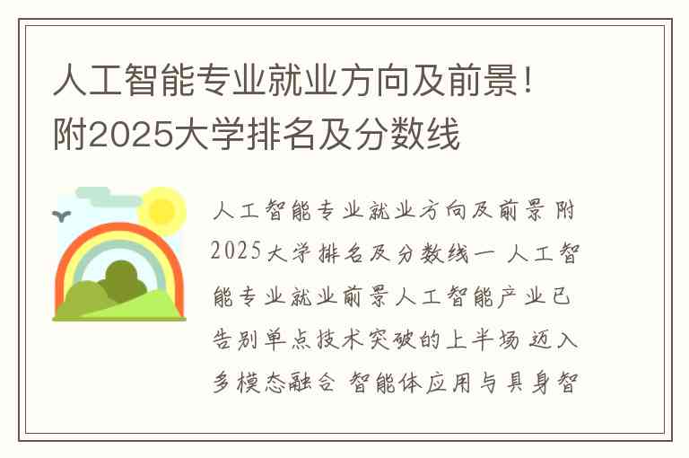 人工智能专业就业方向及前景 附2025大学排名及分数线
