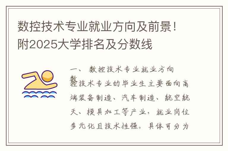 数控技术专业的毕业生主要面向高端装备制造、汽车制造、航空航天、模具加工等产业,就业岗位多元化且技术性强。具体可分为以下几个方向: