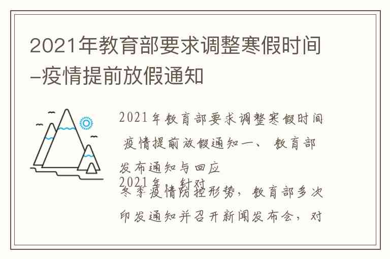 2021年教育部要求调整寒假时间 疫情提前放假通知