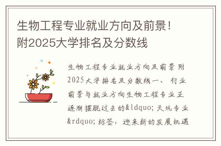 生物工程专业就业方向及前景 附2025大学排名及分数线