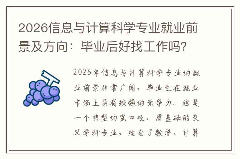 总体而言,2026年信息与计算科学专业的毕业生在就业市场上有很强的适配性和竞争力。只要在校期间打好数学基础,强化编程实践,并关注行业动态,就能在众多热门行业中找到理想的工作岗位。