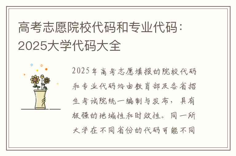 2025年高考志愿填报的院校代码和专业代码均由教育部及各省招生考试院统一编制与发布,具有极强的地域性和时效性。同一所大学在不同省份的代码可能不同,且每年都可能发生变动。